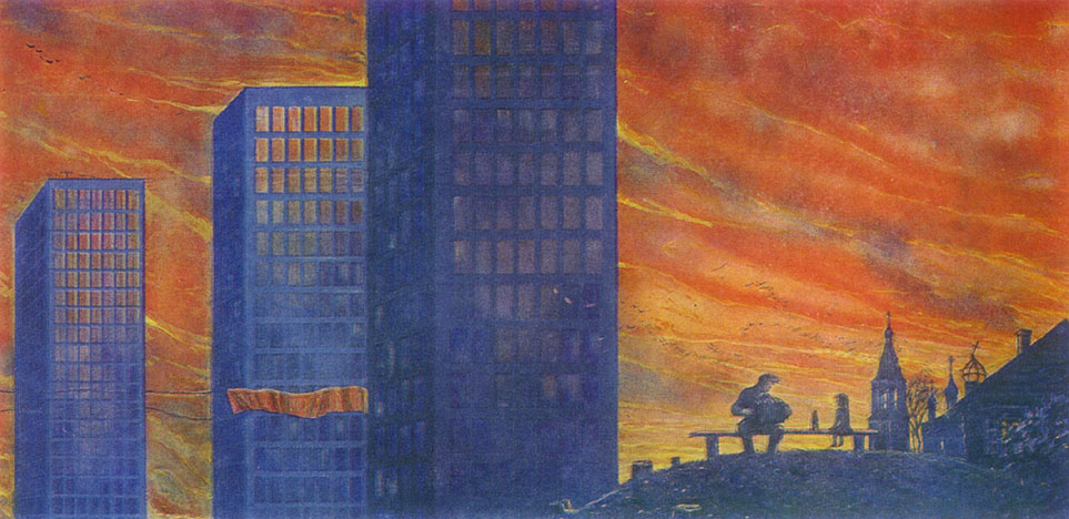 В отношении Ильи Сергеевича Глазунова зачастую и с удовольствием путают художника и общественного деятеля. И те, кому он нравится как художник, полностью переносят свою любовь на его политическую позицию, а кому не нравятся его убежденческие высказывания, автоматом ╚поплёвывают╩ на его творчество. И это, наверное, правильно ╚поэт в России больше, чем поэт╩. Только вот после расстрела ╚Белого дома╩ стоит ли так запальчиво швырять друг в друга комьями ярлыков, штампов? Мне кажется, что на фоне памяти погибших, нам не достойно продолжать тужиться лозунгами десятилетней давности. Жертва была принесена. Гражданская война не случилась. И слава Богу. Если спокойно: Илья Сергеевич несомненно большой и состоявшийся русский художник второй половины двадцатого века. Талант? Он энергетичен явно его картины заряжают, от них исходит сила. Это ощущает каждый, другое дело созвучная ли эта энергетика данному зрителю, возбуждает она его, или же, наоборот, подавляет, злит. Каждый художник работает для ╚своих╩. Об этом ли говорить? И чего кому возмущаться, если мне тот же Довлатов не близок? Я просто помолчу... Мастеровит ли г-н Глазунов, крепкий ли ремесленник? Опять таки, без сомнения. Раздражает его небрежность, идущая от скорописи. Но тут нужно очень и очень быть внимательным к самому себе: нет ли элементарной зависти? Попади-ка я в ╚струю╩, получи такое бешенное признание, - а не вовсе бы забалдел, запьянел от того, что покупают в конце концов только твою подпись. Примеров хоть отбавляй, от Пикассо... Илья Сергеевич труженик. Вообще очень и очень трудно найти компромисс между истекающей через тебя (Флоренский о Блоке!) энергией и достаточностью её оформления в материале. Кто-то может писать в день по 20-30 страниц ╚горячего╩ текста, а кто-то ½. Это только если честно, до опустошённости. И здесь только можно и нужно судить автора или недодал, или наоборот, симитировал силу. Тут-то не обманешь, чувствуется. Ещё одно, опытно обретённое, замечание: о России, как о Матери, невозможно писать не сусально. О России, как о Матери, нельзя голую правду. Это скотство. Отец таких ╚правдистов╩ Хам стал ╚чёрен лицом╩.